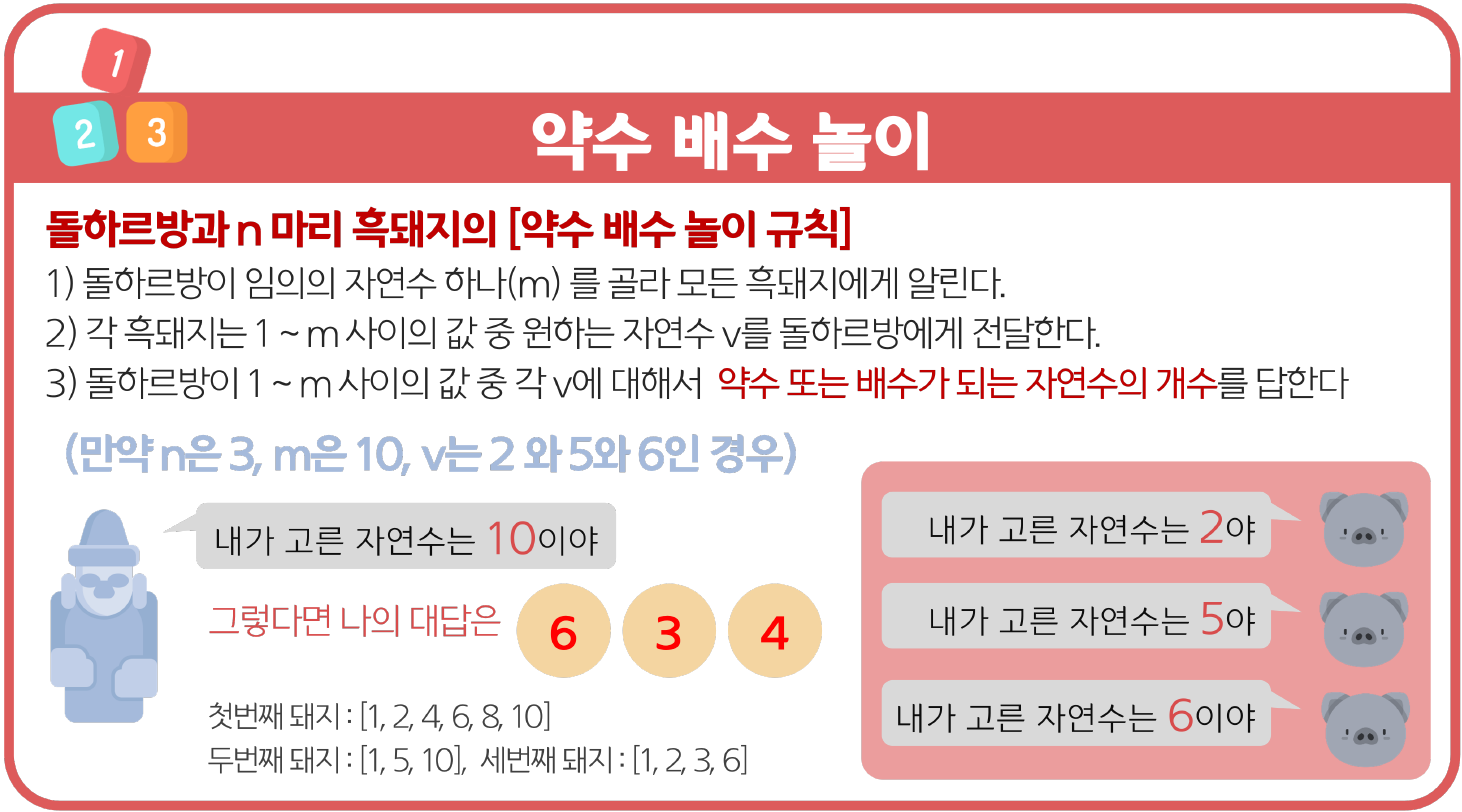 돌하르방이 고른 자연수가 m이고, n마리의 흑돼지가 고른 자연수가 각각 v1, v2, ... , vn 일 때,