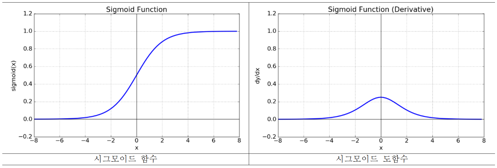 sigmoid 함수는 모든 실수 값을 0보다 크고 1보다 작은 미분 가능한 수로 변환하는 특징이 있기