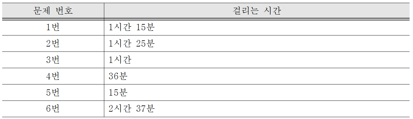 문제를 해결하는데 걸리는 시간은 아래와 같다.