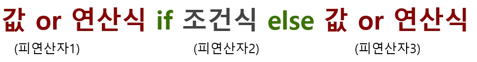 조건 식의 연산 결과가 true일 경우 결과는 피연자자1이고, 조건식의 연산 결과가 false이면 결과는 피연산자3이 된다. 이때 반환값에는 값뿐만 아니라 수식, 함수 호출 등 여러 가지 형태의 명령문이 올 수 있다.